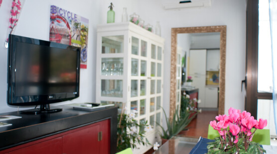 Mappa Elegantly furnished apartment on the second floor of a quiet building with elevator, next to a cycling path. It is 45 square meters and is composed of: One double bedroom One bathroom with bathtub One living room with kitchen and sofa bed One panoramic terrace with mountains view Apartment Emanuele